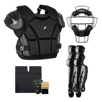 As your young catcher continues to grow, make sure they stay safe behind the plate with the All Star Intermediate Players Series Catcher’s Kit. It includes everything they need to protect them from head to toe, including a hockey-style helmet, chest protector, a pair of leg guards, throat guard, and a convenient carry bag.