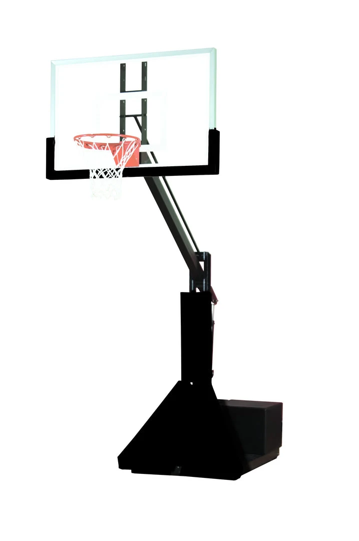Maximum versatility, maximum safety, maximum playability and maximum value make one of our Max portable systems just right for your facility. Glass Max includes a 54″ tempered glass backboard and 30″ safe play area…No matter which Max you choose, you’ll get features not found on similar systems offered by other manufacturers including: • Infinite goal height adjustment from 5′ to official 10′ • Durable breakaway goals • Black front base and pole padding, additional colors offered on orders of two or more at an additional charge (see BA853UP) • Over 850# of hidden, customer supplied ballast to eliminate tip over risk (see BA853BLST) • Ballast is totally enclosed and safety padded • Single-lever lift handle to allow easy transport and set up • Goal mounts through backboard directly to structure to eliminate backboard stress • Non marking transport wheels • When lowered, fits through 78″ high double doors for storage • Standard black backboard edge padding